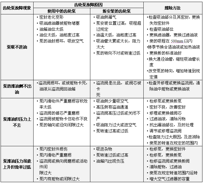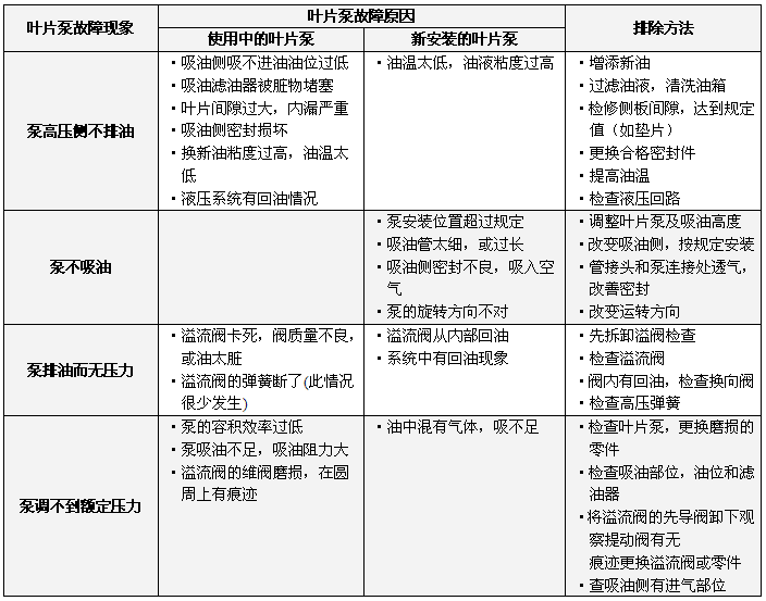葉片泵故障原因及排除方法 齒輪泵故障原因及排除方法